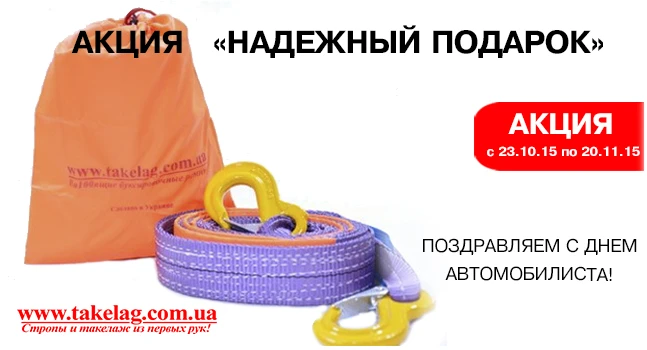 По условиям акции, все клиенты, которые оформили заказ на фиксированную сумму и в заказе присутствует позиция Буксировочный, Стяжной или Автовозный ремень в любом количестве, получают буксировочный ремень в подарок: