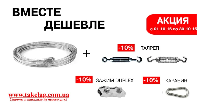 -10% скидка на талреп «крюк-кольцо» / «крюк-крюк», или зажим Duplex, или на карабины;