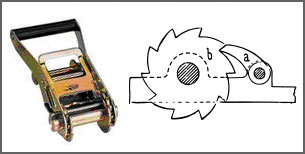 - натяжное устройство (храповой замок, трещотка) предотвращает ослабление ленты, закрепляющей груз, во время движения транспорта, что обеспечивает безопасность участников движения и сохранность перевозимых товаров.